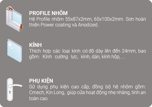 Là hệ cửa tối ưu cho không gian mở, thiết kế mang lại hiệu suất tối đa, dễ vận hành. Sản phẩm được thiết kế tạo sự đóng mở một cách nhẹ nhàng, tránh tháo gỡ từ bên ngoài, sức chịu đựng cao.