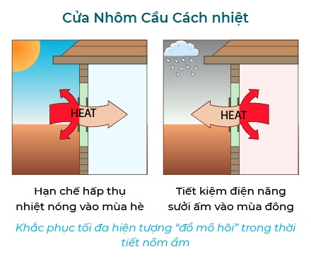 Cửa nhôm cầu cách nhiệt là hệ cửa được sản xuất và lắp ghép từ các thanh nhôm Profile cầu cách nhiệt nhập khẩu chính hãng, kết hợp với hệ phụ kiện nhập khẩu đồng bộ tạo nên một hệ cửa cách âm cách nhiệt hoàn hảo, giúp tiết kiệm điện năng tối đa cho công trình.